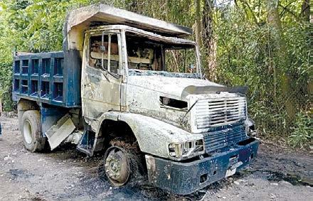 Tapachula, Chiapas. Transportistas que se disputan el acarreo de material pétreo en la obra de reparación de la línea férrea en la frontera con Guatemala, una de las líneas que conectará con el proyecto del tren transísmico, se enfrentaron la tarde del lunes dejando un saldo de dos camiones incendiados y tres heridos.
