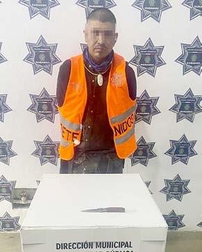 Durango, Dgo.- Un sujeto de 30 años de edad fue detenido por elementos de la Policía Municipal, luego de atacar con un arma blanca a un pepenador; los hechos ocurrieron en un predio cercano a la salida a Zacatecas. La víctima, que tuvo una herida super cial, es Víctor Francisco Moreno Galindo, de 23 años de edad, quien se dedica a recolectar material de reciclaje. Vive en la colonia Cielo Azul, en la zona oriente de la ciudad. En tanto que el presunto agresor es Martín S. R., de 30 años de edad, habitante del fraccionamiento Río Dorado, al que le aseguraron la navaja con la que cometió la agresión. Los hechos ocurrieron el jue-