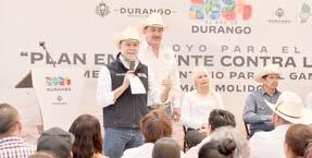 “Esto es una realidad, el clima ya no tiene palabra, pero estamos muy a tiempo de poder recuperar al mundo”, dijo Esteban Villegas, al supervisar la dispersión de 60 toneladas de este alimento que les permitirá a los productores contar con un ganado fuerte y sano En esta visita a la comunidad de Cuauhtémoc del municipio de Cuencamé, el mandatario estatal adelantó que próximamente llegará semilla de frijol y avena, así como la construcción de 270 bordos y presas de mampostería en todo el estado.