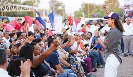 diésel, situación que afecta la actividad de los choferes, así como el costo de la canasta básica. "Voy a levantar la voz por todos ustedes, por Durango, que regrese lo que es nuestro, por más empleos mejor pagados y para que sus hijos puedan salir adelante, siempre trabajando en equipo con el gobernador y los alcaldes”, resaltó al agradecer que le abran las puertas de sus casas. A nombre de todas y todos los integrantes del Sindicato de la Alianza, su líder Raúl Medina Samaniego aseguró: “Queremos que Gaby Hernández López ‘La China’ sea la voz de los ciudadanos, que hable fuerte por los trabajadores del volante y las clases