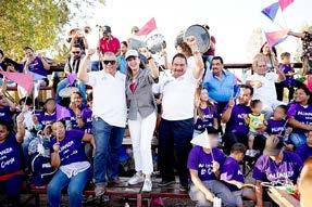 Torres Rodríguez, Noel Fernández, Dany Soto, Fernando Rocha y Gaby Vázquez. "Concluimos nuestra campaña con una visión orientada a resultados que beneficien a la gente y sus familias. Lo hacemos así porque lo que importa es trabajar unidos en esta causa común que es Durango y México", subrayó Hernández López, destacando el esfuerzo conjunto de su compañera de fórmula y de todos los candidatos, quienes trabajarán en equipo con el gobernador y los alcaldes. En un ambiente festivo y de victoria, Hernández López enfatizó la importancia de estas elecciones, señalando que está en juego la posibilidad de construir el México y el Durango que todos soñamos, frente a la amenaza de