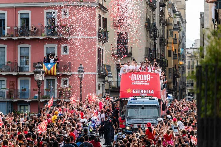 demuestre que es una transacción entre partes relacionadas. No existe un cruce directo entre CFG y Etihad Airways, siendo esta última propiedad de un fondo soberano de Abu Dhabi controlado por el estado. Fuentes cercanas al Girona son optimistas de que el club podrá competir en la Champions League la próxima temporada. Los jugadores realizaron este domingo un recorrido en autobús descubierto por la ciudad para celebrar la clasificación a la competición bajo el lema: “Girona, territorio de la Champions”. El desfile terminó en el centro de la ciudad, en el ayuntamiento, con los jugadores saliendo al balcón para saludar a los miles de seguidores que habían salido a verlos.