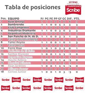 Con ello se generó la tabla general en donde del 1 al 6 terminaron sembrados Base Ortega, Sombrerete, Club Campestre de Durango, Industrias Diamante, Club Deportivo Maderera y San Pancho de Nombre de Dios, mientras que del 7 al 10 se colocaron Mega, Reyna, Hecsa y Díaz.