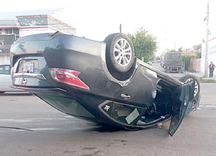 ebrio volcó en “Factor” tras chocar contra auto estacionado