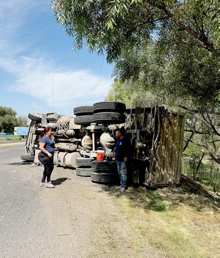 Dichas unidades acabaron con las ruedas hacia arriba en un canal pluvial contiguo, mientras que el camión avanzó unos metros más fuera de control y también se volcó.