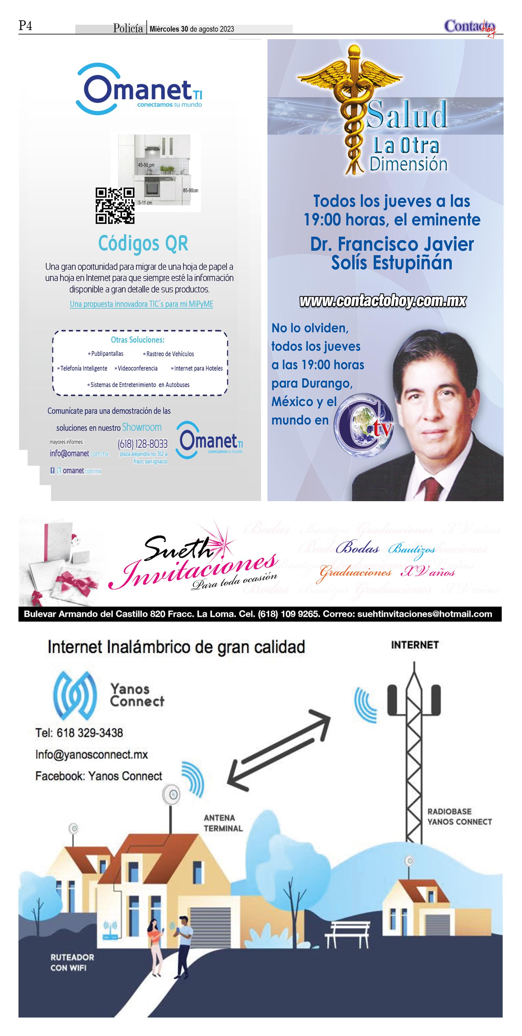 de agosto 2023 Año 25 No. 7814 Durango, Dgo., Mx. Miércoles 30