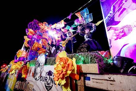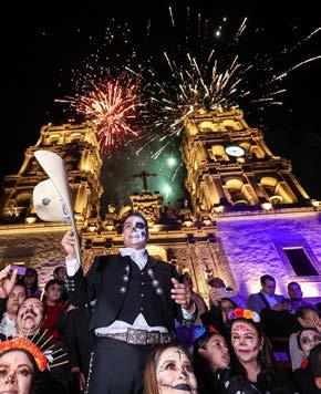 El color, la tradición y, sobre todo, la música, hicieron vibrar el Centro Histórico de Durango, la casa de todos, con el espíritu del Día de Muertos. En un homenaje a la vida y la muerte, la gran familia duranguense disfrutó del des le del Festival Muuki 2024, dedicado a grandes exponentes musicales que han trascendido, bajo el lema “¡Canta y no llores!”. Más de 22 mil duranguenses, entre luces, catrinas, catrines y con la música como protagonista, presenciaron el paso de más de 30 carros alegóricos elaborados por diversas direcciones municipales.
