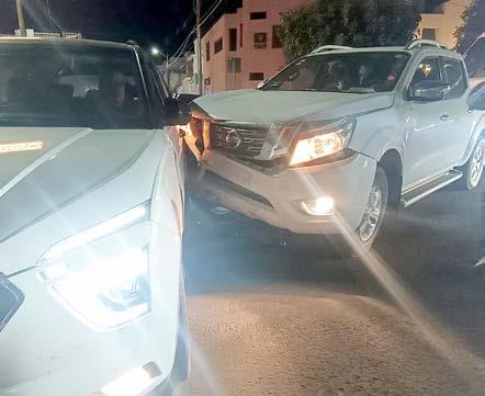 Durango, Dgo.- En medio del congestionamiento ocasionado por el des le del martes por la noche, se registró un accidente entre dos camionetas en uno de los cruces afectados por dicha situación; por fortuna, los daños solo fueron materiales.