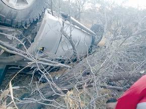 Nombre de Dios, Dgo.- Tres personas lesionadas, incluido un hombre que fue reportado muy grave, es el saldo de un fuerte accidente de tránsito ocurrido en territorio de Nombre de Dios; el vehículo en el que viajaban acabó volcado.