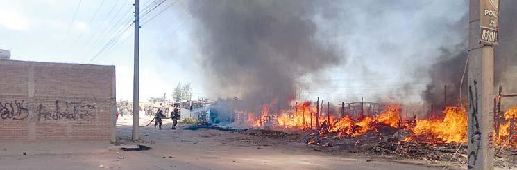 Durango, Dgo.- Tres jacales construidos con materiales frágiles fueron destruidos por el fuego en un aparatoso incendio ocurrido en el fraccionamiento San José III.