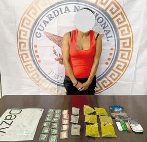 Entre los enervantes que tenía la fémina, están 12 raciones de cristal, 9 más de marihuana, tres cigarros de dicha droga ya elaborados, 5 dosis de cocaína y un teléfono celular.