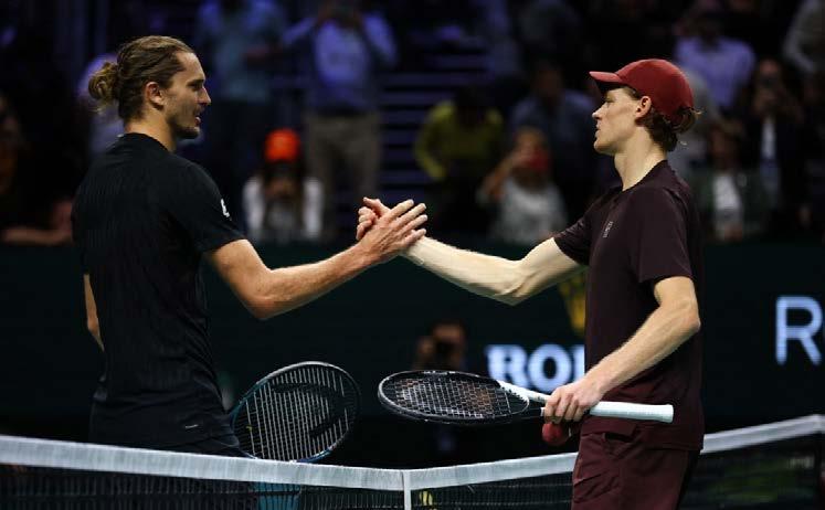 ferencia abismal. Desde el inicio, el italiano se mostró intratable: rompió dos veces el saque de su rival y en apenas 20 minutos ya ganaba 4-0, desplegando un juego preciso, agresivo y sin errores. Sinner fue un huracán en la pista indoor, terreno en el que es el más dominante. Consciente de sus propias molestias físicas, el nacido en San Candido buscó dominar con su servicio y cerras los juegos lo más rápido posible. El resultado fue demoledor: un 6-0 en media hora, que dejó atónito a un Zverev sin respuestas y con visibles molestias en el tobillo. El alemán pidió atención médica durante el segundo set, señalando que el tobillo le dolía desde la noche anterior. Tomó medi-