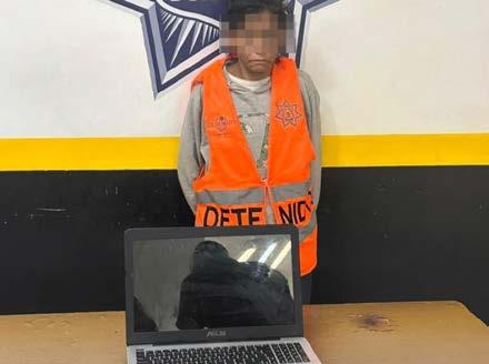 Cuando salió, llevaba ya consigo la laptop, por lo que el afectado fue tras ella y la alcanzó; instantes después pasó por el lugar una patrulla de la Dirección Municipal de Seguridad Pública y la víctima les hizo señales.