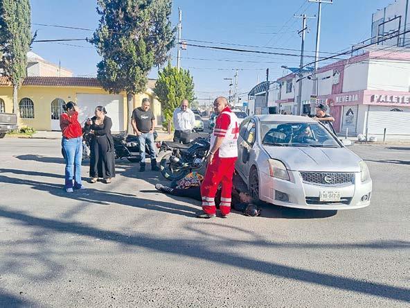 Por el impacto, el conductor del vehículo más frágil terminó en el suelo, con contusiones que obligaron a la solicitud de asistencia médica; por fortuna, la situación no es de gravedad, aunque hay lesiones que serán incapacitantes por algunos días.