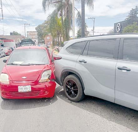 a frenar, por lo que chocó por alcance a la camioneta ya mencionada, a la que le causó daños tanto en la carrocería como el sistema de luces. Su coche, de igual forma, tuvo afectaciones en la parte frontal; al sitio llegó la Policía Vial para encabezar los trámites entre la aseguradora del propietario de la Highlander y el presunto responsable del hecho de tránsito, en este caso el conductor del Matiz.