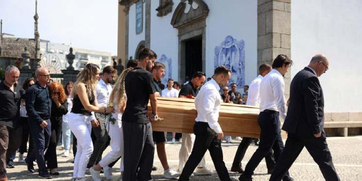 La ceremonia fue oficiada en el lugar de nacimiento de los futbolistas y donde se reunieron sus familiares y amigos de profesión. Entre ellos destacó la presencia de su mejor amigo, Rubén Neves, quien en menos de 24 horas viajó desde Estados Unidos tras terminar su participación en el Mundial de Clubes con el Al Hilal y que llegó al funeral para ayudar a cargar el ataúd.