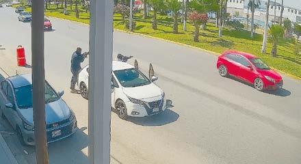 En la imagen, captada por una cámara de seguridad, se aprecia a un individuo descender de un automóvil compacto de color blanco y apuntar, a la distancia, en contra de los ofi-