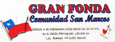 La comunidad San Marcos nos invita a participar de su Gran Fonda, este sábado 2 de Septiembre, desde las 20hrs. En el salón Parroquial en los Álamos 1155, Renca. Adhesión $5.000./ por pareja)