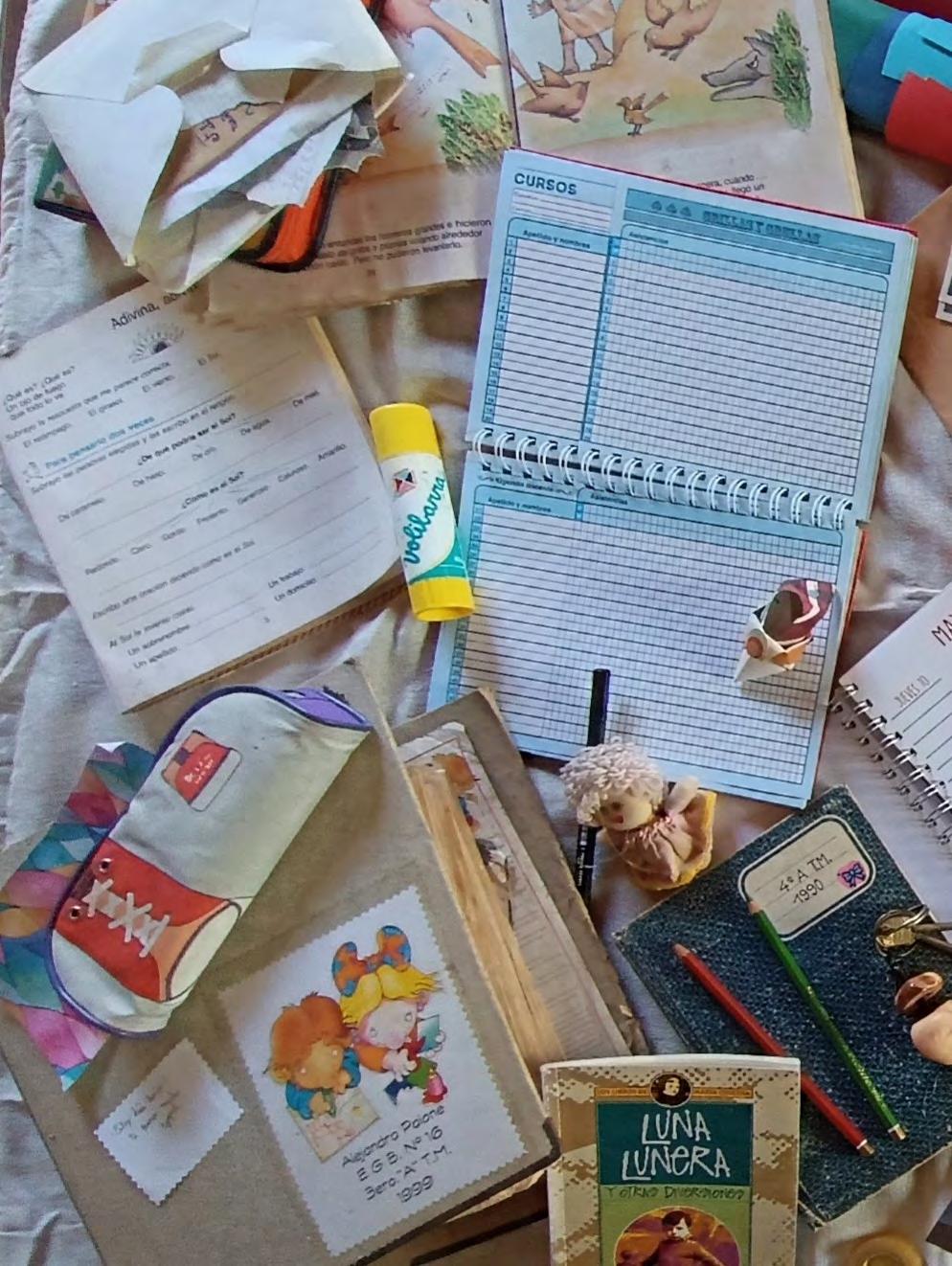 Miro de reojo el lugar y veo un escritorio con una máquina de escribir rodeada de planillas, carpetas docentes y registros de asistencia forrados con papel a lunares.