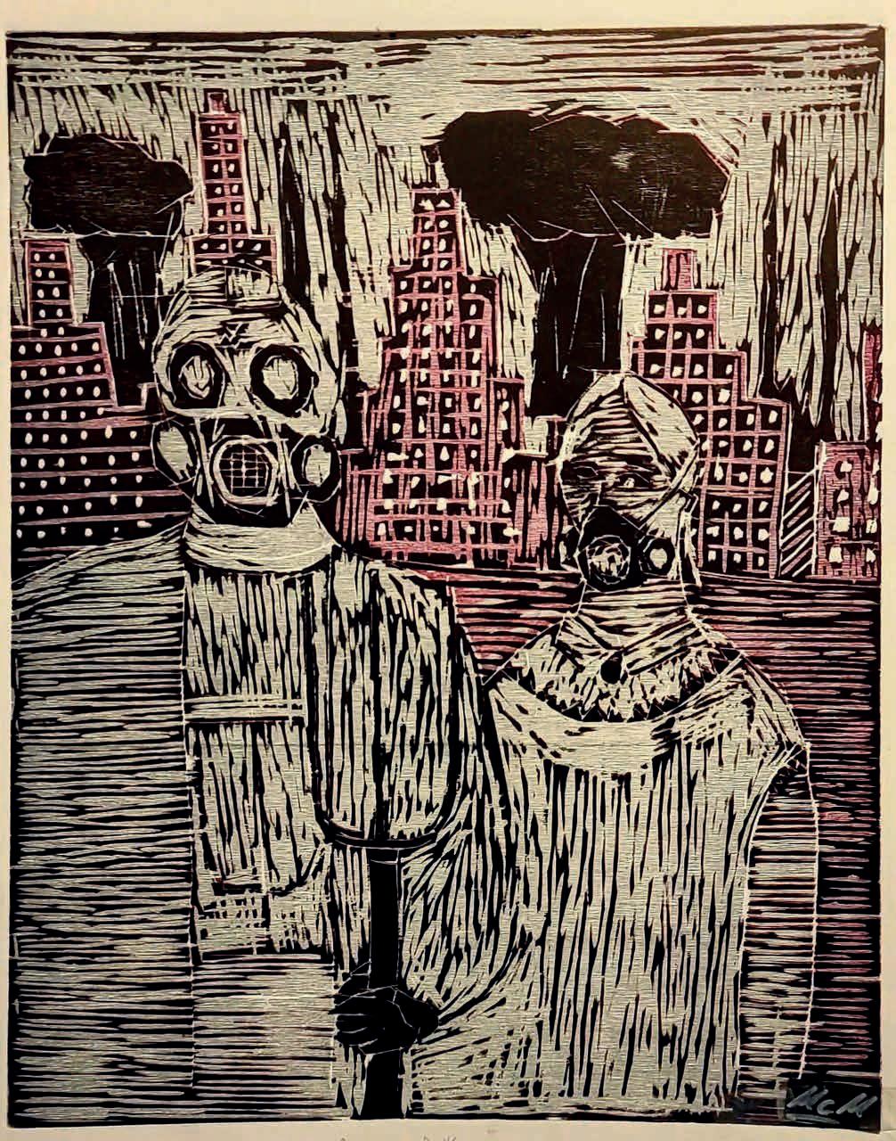 Sylvia Mekhitarian, Visual artist, Printmaker lives in Australia. Born1952 Egypt, to Arminian parents, during the Suez Crisis the family left for England where she did most of her schooling. 1965 family migrated to Sydney, Australia. During her married years, Sylvia had her own children and lived in an alternative life style. She became interested in life-drawing, Painting and ceramics. Finally started university to later become a high school teacher. Sylvia holds Bachelor visual arts, Post Graduate computer education and a Graduate diploma in education. She graduated and became a fulltime visual arts high school teacher, keeping her art practise as much as she could during her teaching years. She lives in a rural countryside in Queensland, travels to and from the Printmaking studio, she can get access to the lithography press. Her artwork is primarily printmaking, mixed media and drawing and varies from the traditional methods to the experimental. Inspiration comes from her environment influences and the issues of social structure and its impact on human condition. Sylvia’s technique, start with rough sketches from memory she said, ‘once I paint with the brush on the stone, it will change again, well I could say it’s a passion of mine to work spontaneously onto the lithography stone and I love the exploration, especially the drawing part from memory and how it translates automatically onto my stone. With touche-wash and brush in hand it flows while moving the mark, I see the image in my mind and it translates onto the stone’.