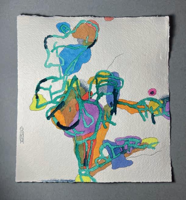 My primary approach is abstraction expressionism. With each new work the creation process is an attempt to convey either feelings or an impression of the natural world. I work by searching for a balance between what appears to be totally accidental and spontaneous. I take what I have chosen to motivate me beyond representational and into the sense of what what each piece means to me at the time of creation. With each new work, the creative process is a search for the right combination of line, the right color choice, and the movement to bring an impression to fruition. I will explore themes sufficiently to draw out fresh expressions, to draw out new challenges. This approach ensures variety to help keep me intellectually engaged in my artistic explorations. At times I will have totally disparate concepts working simultaneously for balance, visually and mentally, while searching through each piece, finding the various colors and forms appropriate for each one. I am always aware of color relationships, and how colors can convey certain feelings. As a student of the concepts of color theory as written in books by Joseph Albers and Hans Hoffman, I am selective in my color choices with the evolving image.