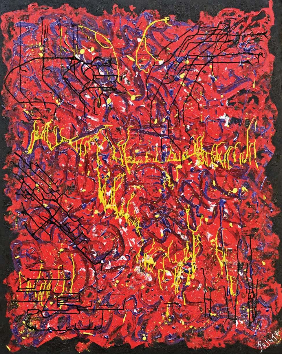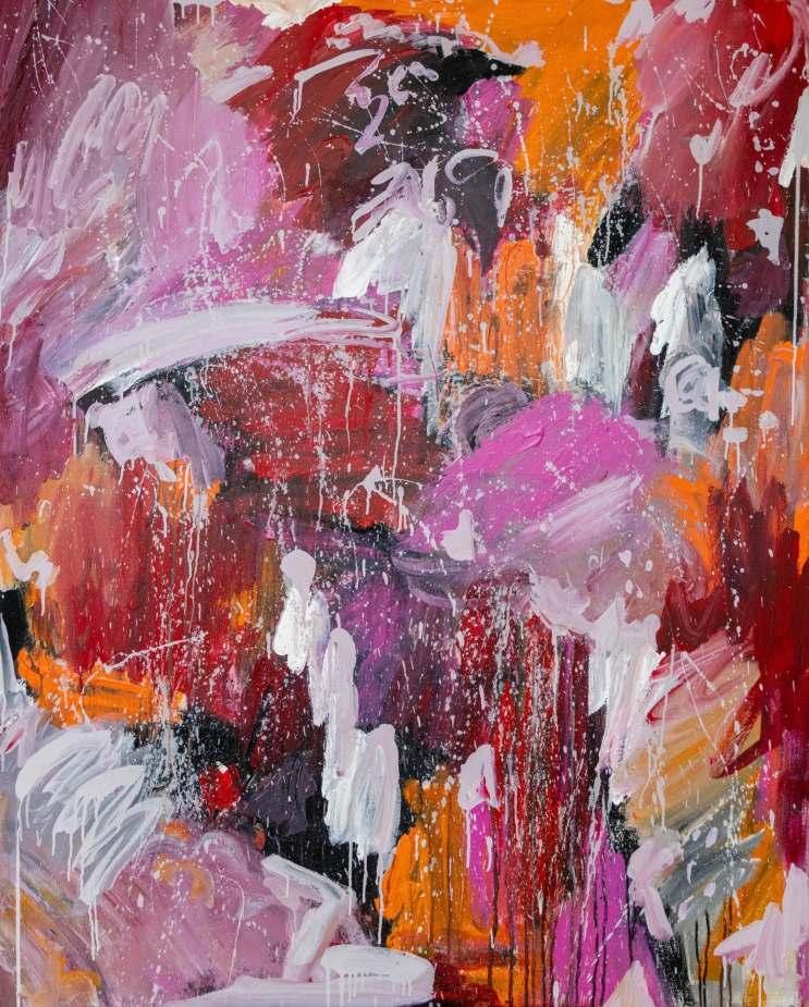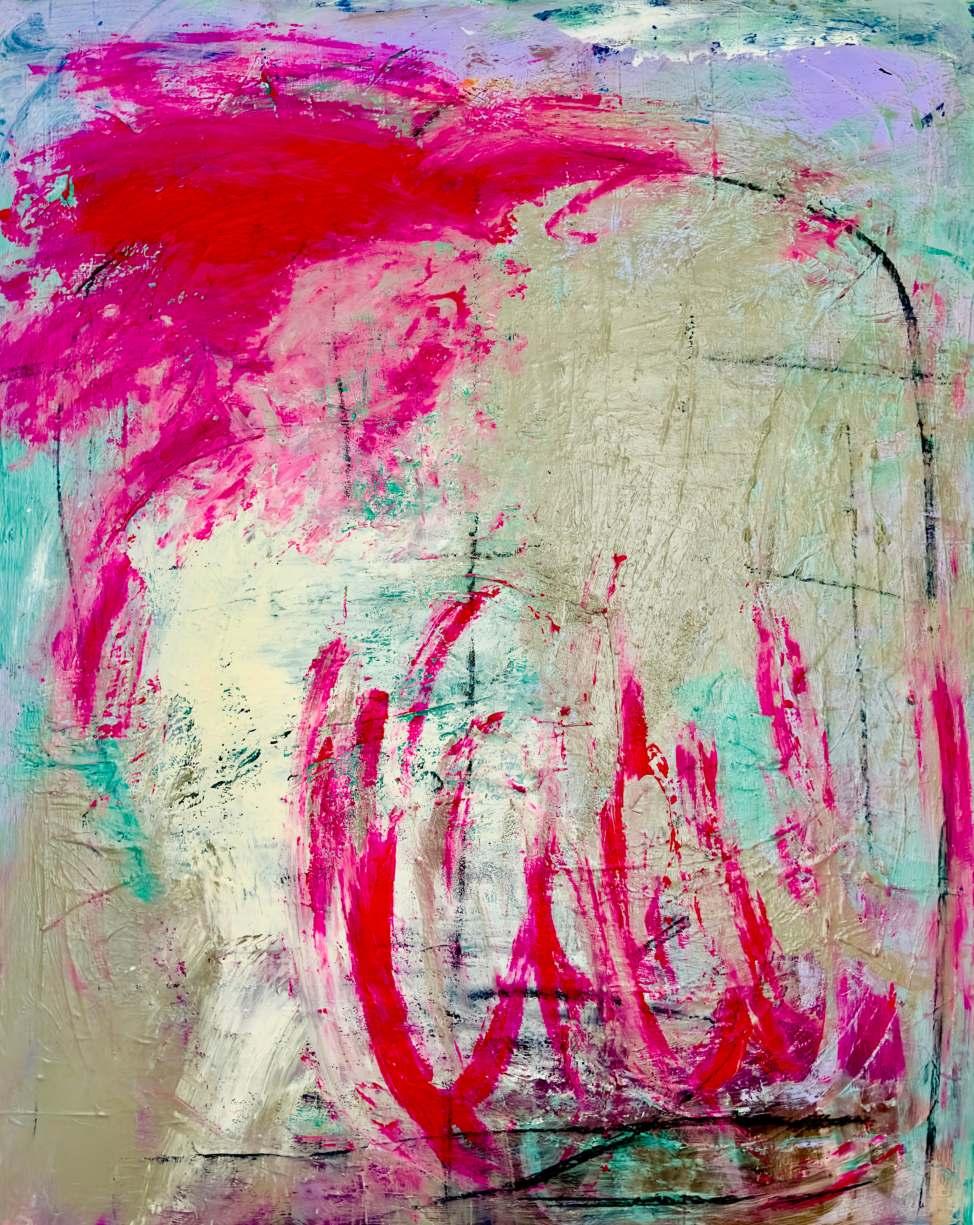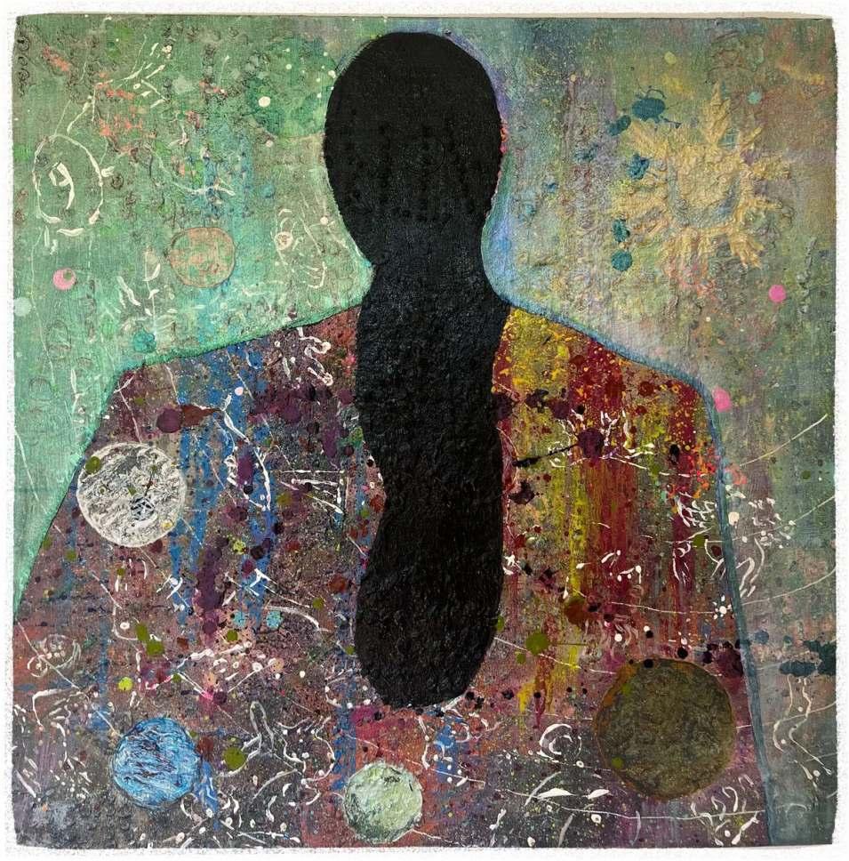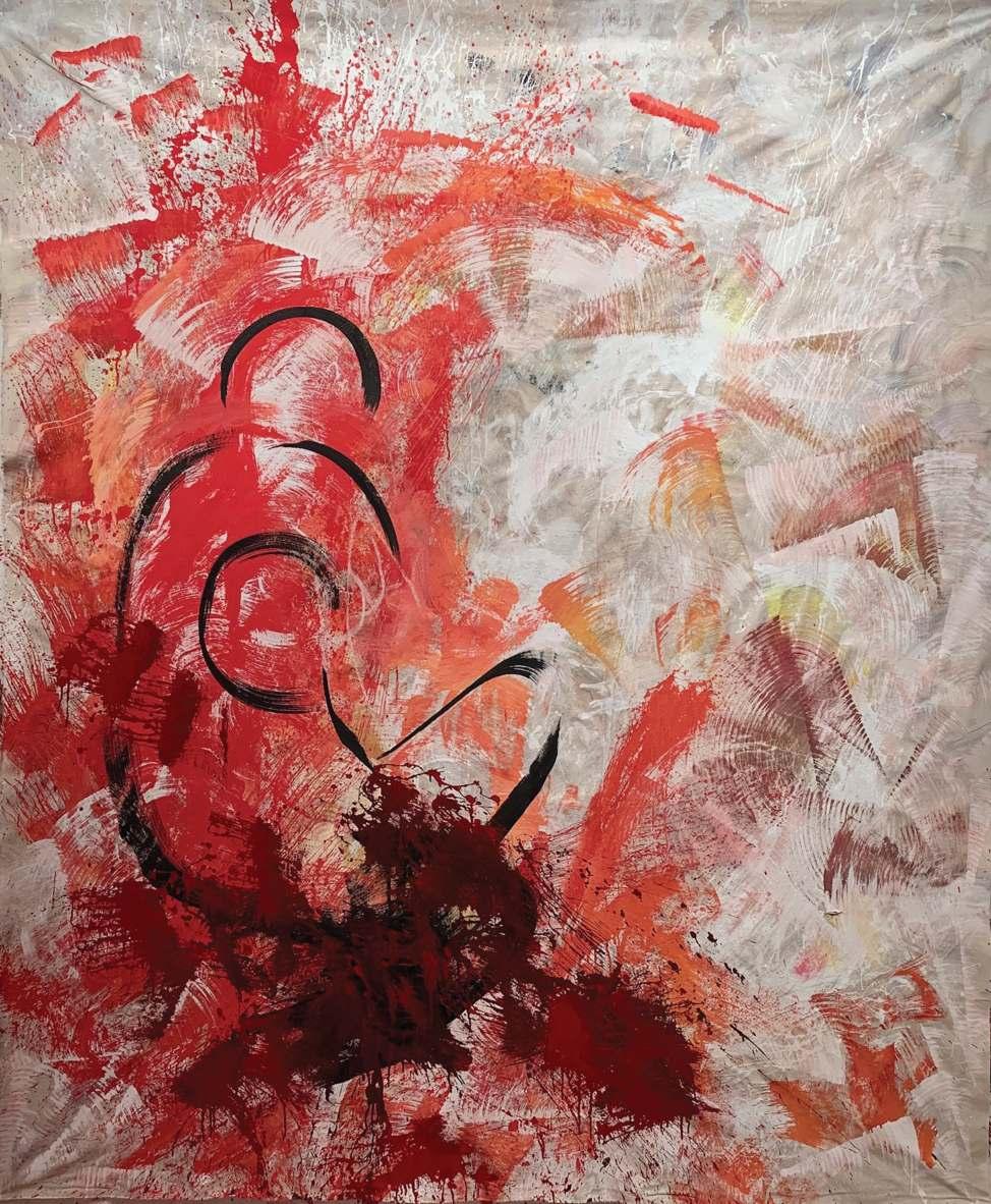 Layering acrylic, oil and ink over symbol and prayer reflects how my art is a process of self-discovery and an ode to life’s journey. Although how I approach the canvas is different every time, it always ends the same. There is a visceral feeling in my body, similar to when I hear a song or a poem that makes me breathe differently. If it feels true for me, I trust that it will be true for at least one other person in the world.