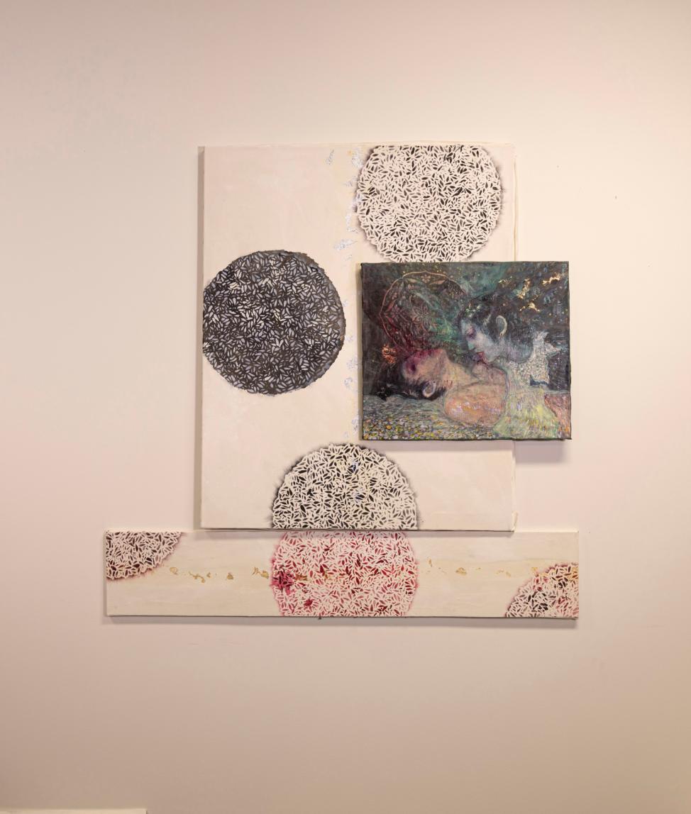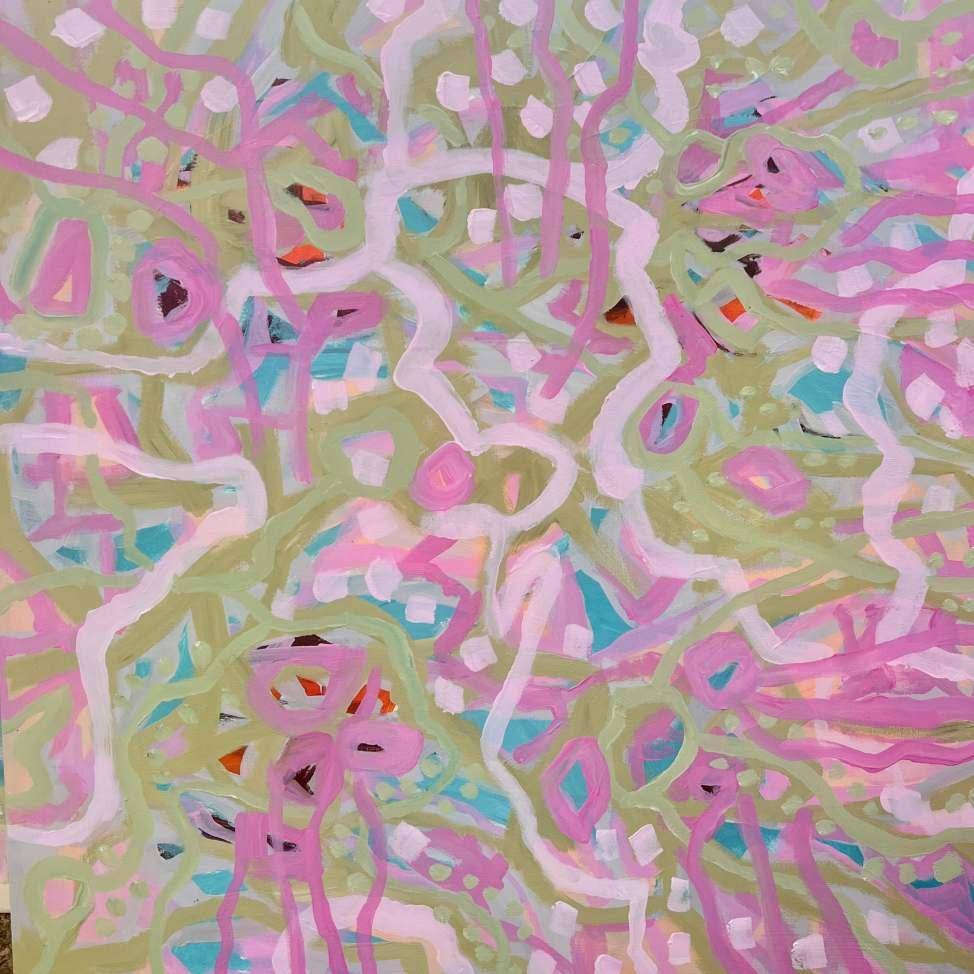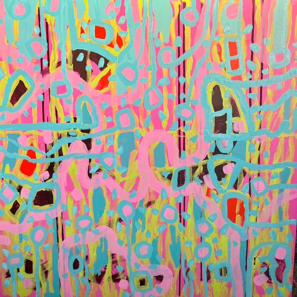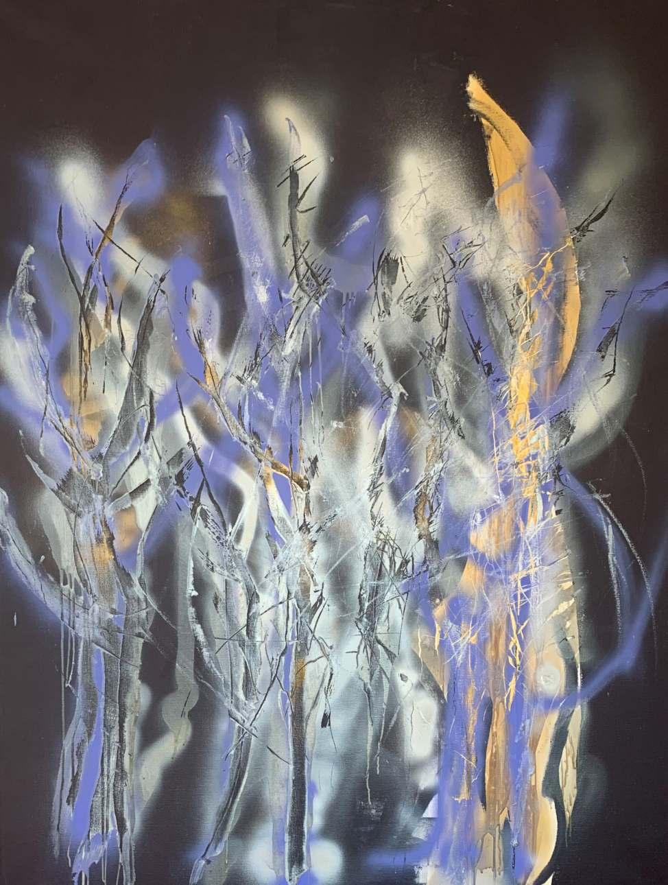 Layering acrylic, oil and ink over symbol and prayer reflects how my art is a process of self-discovery and an ode to life’s journey. Although how I approach the canvas is different every time, it always ends the same. There is a visceral feeling in my body, similar to when I hear a song or a poem that makes me breathe differently. If it feels true for me, I trust that it will be true for at least one other person in the world.