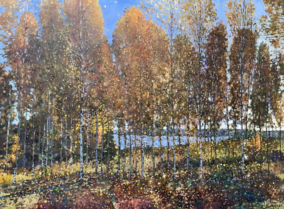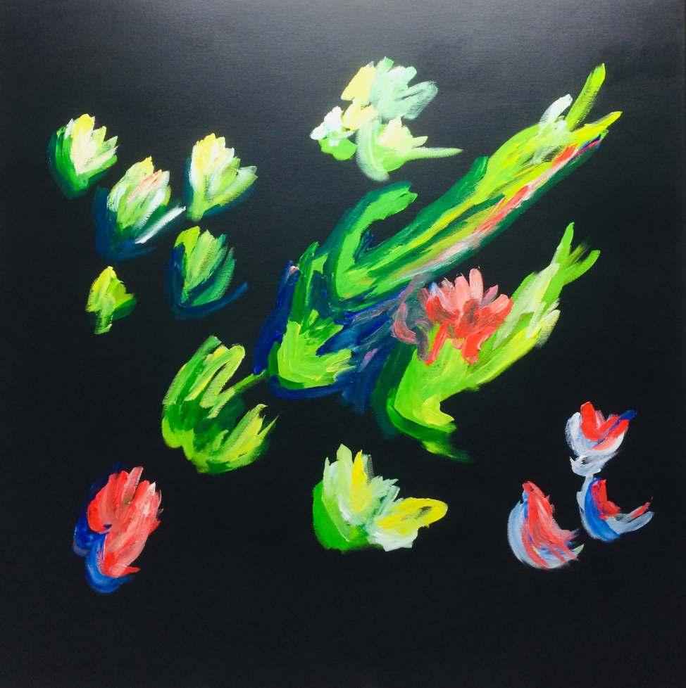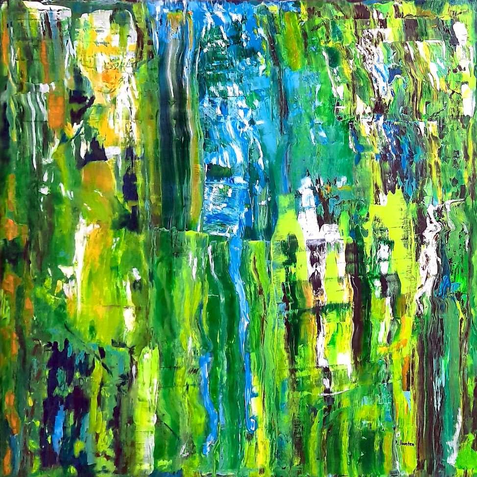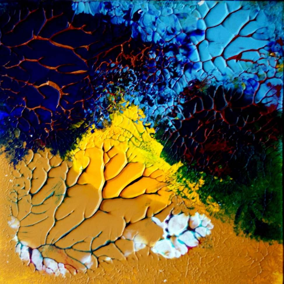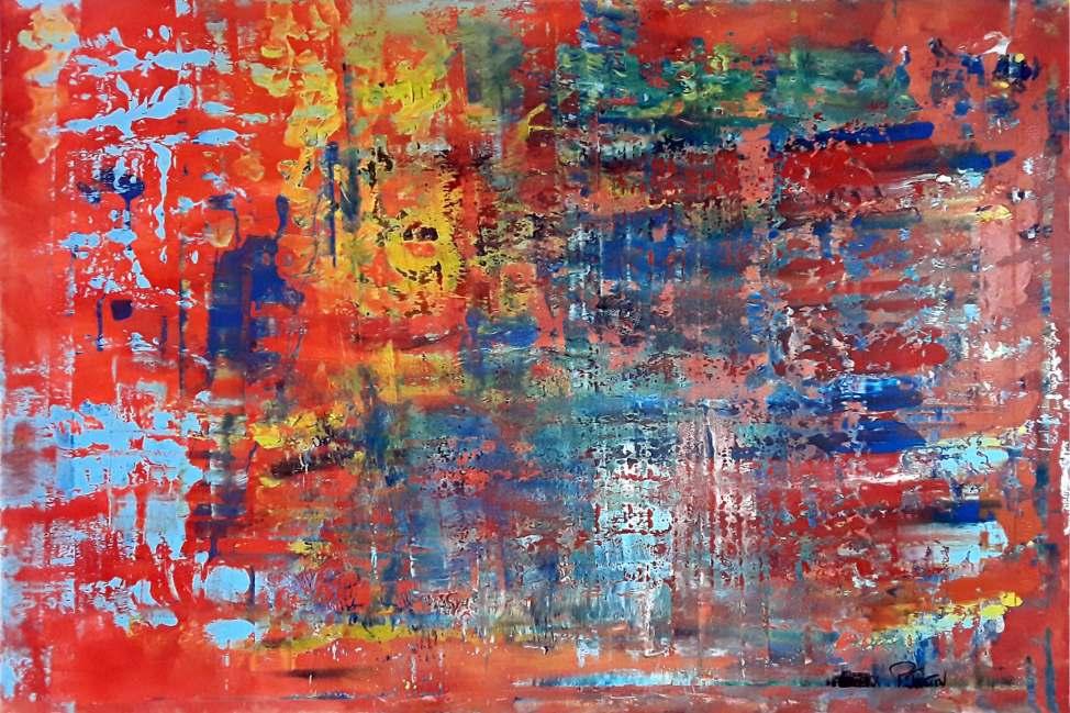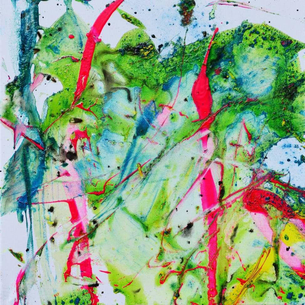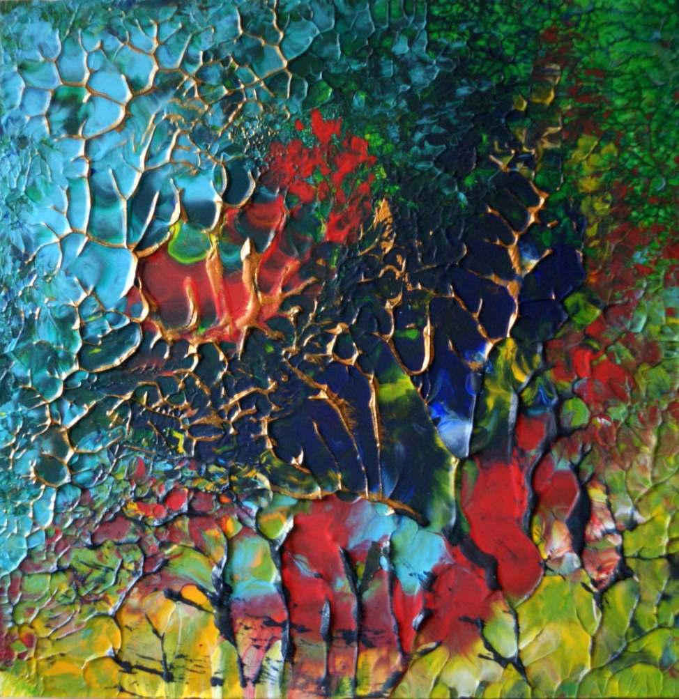 “My paintings are a spontaneous occurrence, born out of the experience, but maturing reflexively in the process of creation. My technique is controlled improvisation. Gravity is my medium. Images are caught with intent.”
