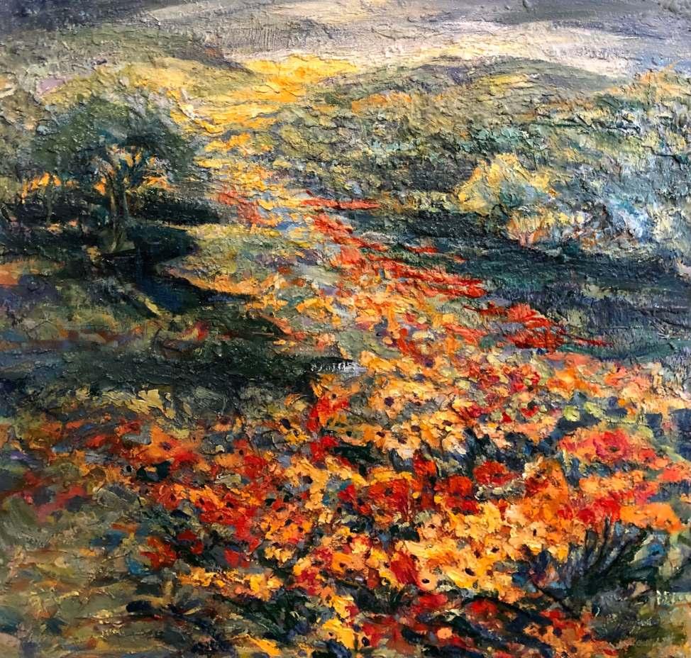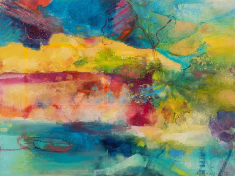 Her mentor Paul Jenkins (1923-2012), the acclaimed Abstract Expressionist, encouraged the artist in 1979 to work large, eliminate subject matter and focus on color, space and time. Ridgeway followed his advice and has developed and refined her signature technique. “Color is my subject and my muse,” says Ridgeway. Located in Santa Fe, New Mexico since the mid-1990s, Ridgeway is represented by numerous galleries and has been shown in over 80 gallery and museum exhibitions internationally, including a concomitant juried exhibition at the 58th Venice Biennale, Venice, Italy. Her work is included in many public and private collections.