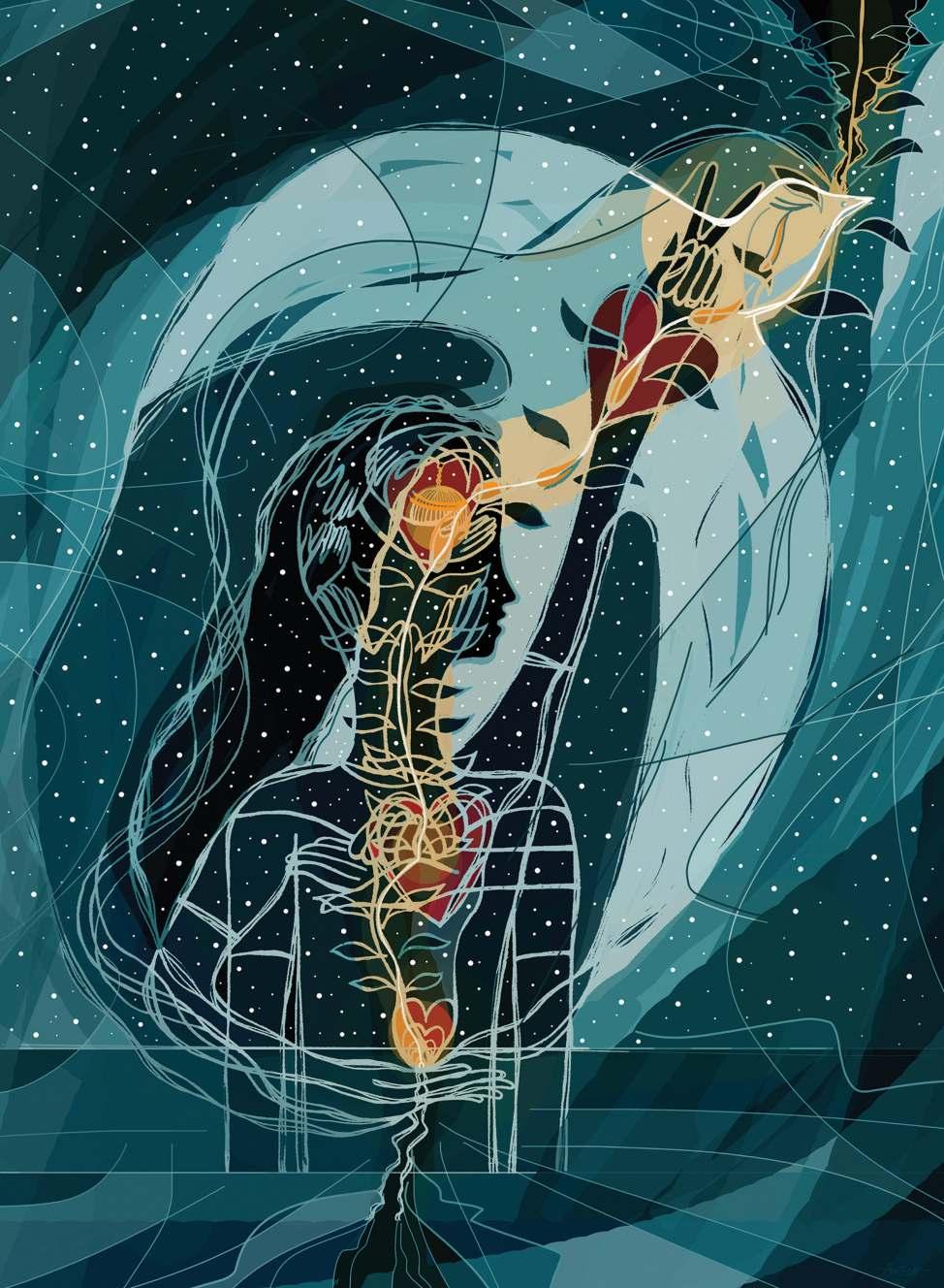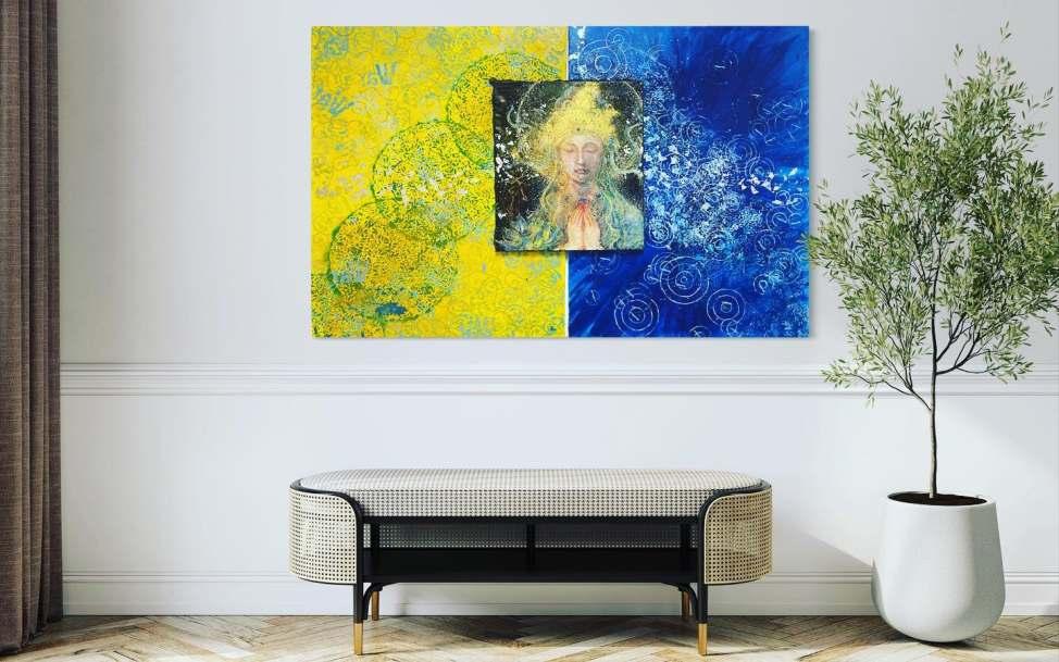 My figurative paintings reflect feminine energy and the need to develop empathy, resilience, patience, love, joy, and gratitude. Using symbols, I want to share my message of how art and color can radiate the light within every human being and convey powerful messages about the strength and resilience of the human spirit.