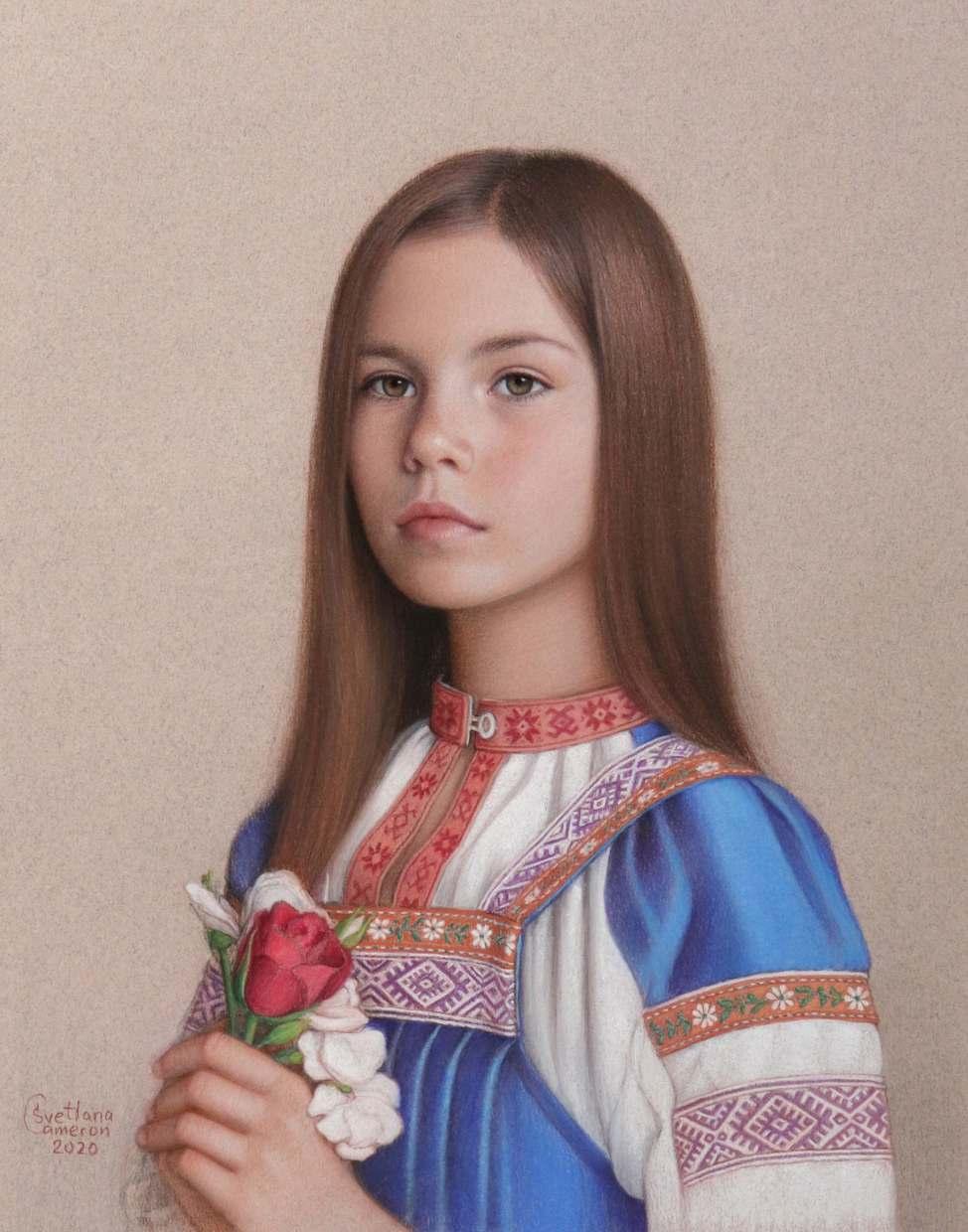 I am best known for two types of works: highly detailed formal oil portraits and delicate drawings of children done in the Renaissance three-colour technique, which I combine with pastel in my own distinct mixed-media style.