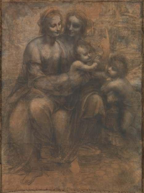 Virgin and Child with St Anne and the Infant St John the Baptist (‘The Burlington House Cartoon’), c. 1499-1500 Charcoal (and wash?) heightened with white on paper, mounted on canvas. 141.5 x 104.6 cm. The National Gallery, London. Purchased with a special grant and contributions from the Art Fund, The Pilgrim Trust, and through a public appeal organised by the Art Fund, 1962. Photo: The National Gallery, London