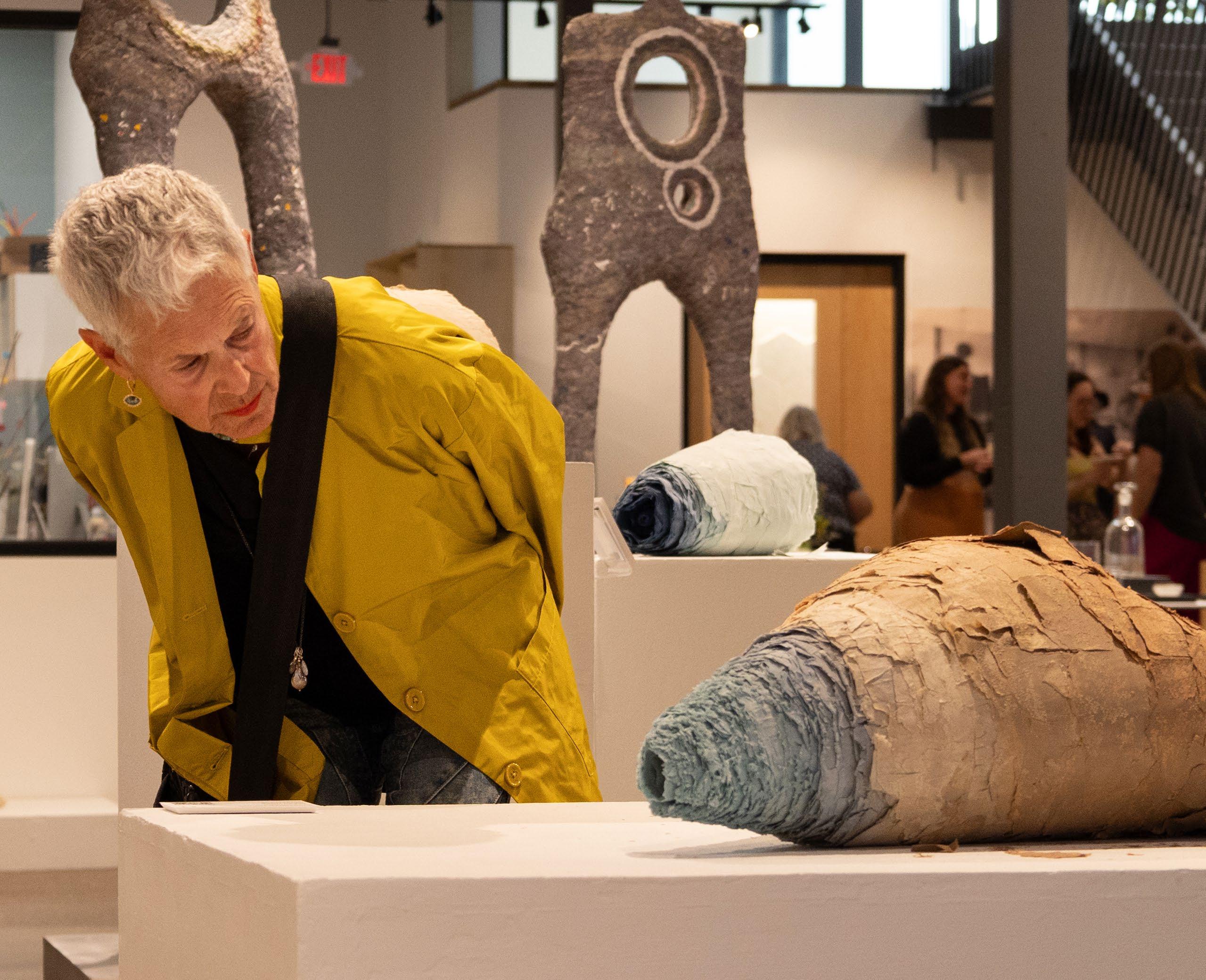 Many of CC’s exhibitions feature multiple artists—like the Transformation series or Fiberart International—to show the variety of techniques and artistic styles within a material. Others bring multiple artists together to show different perspectives or knowledge of a topic, such as in Climate Awakening. But a solo artist exhibition enables an artist to show a more complete view of their repertoire, and for the viewer to gain a deeper understanding of an artist’s style and evolution. Recognizing the importance of solo exhibitions for advancing to the next stage of their careers, CC launched an annual series featuring the work of an exceptional craft artist who has yet to have an exhibition dedicated to their work. The first artist to be featured in this series was New Mexico-based ceramic artist Brie Ruais, whose large-scale yet intimate works investigated the connection between the internal self and the external world, particularly with nature. Working with an individual artist to imagine and design an exhibition has been much more of a collaboration between the artist and CC, and is an opportunity for the artist’s vision to shine through the thoughtful selection of works and how they are presented in dialogue with each other.