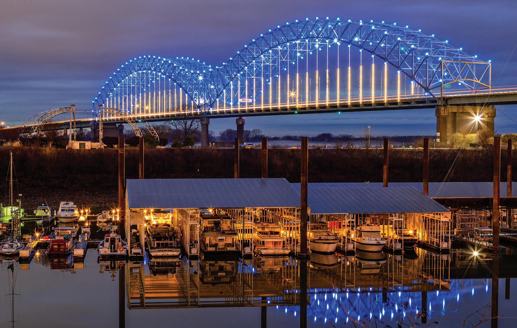 Mighty Lights — Experience the biggest nightly light show on the mighty Mississippi River. See it in all its shining glory at the top of each hour after sundown until the 10 p.m. finale. Thousands of LED lights illuminate Big River Crossing and the Hernando de Soto Bridge in a dazzling and colorful light show that is visible from the riverfront from Beale Street Landing to Fourth Bluff, as well as elevated locations throughout Downtown Memphis including the rooftop bar at the Hu. Hotel and The Lookout restaurant and bar atop the Bass Pro Pyramid.