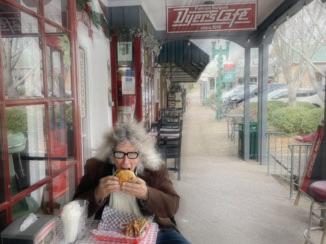 I noticed he didn’t come in for a couple days and I called him. He said he couldn’t manage to walk over here any longer, so I started picking him up on my way to work. He’d get his lunch and sit on his barstool and things were back to normal for a while. Now he’s pretty much past being able to hang out here, but a couple mornings a week I take him to get groceries and supplies and lunch. I love seeing him.”