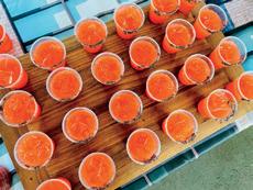 Serving cold gazpacho soup on a hot a ernoon at the recent Loving Local fundraiser was inspired.