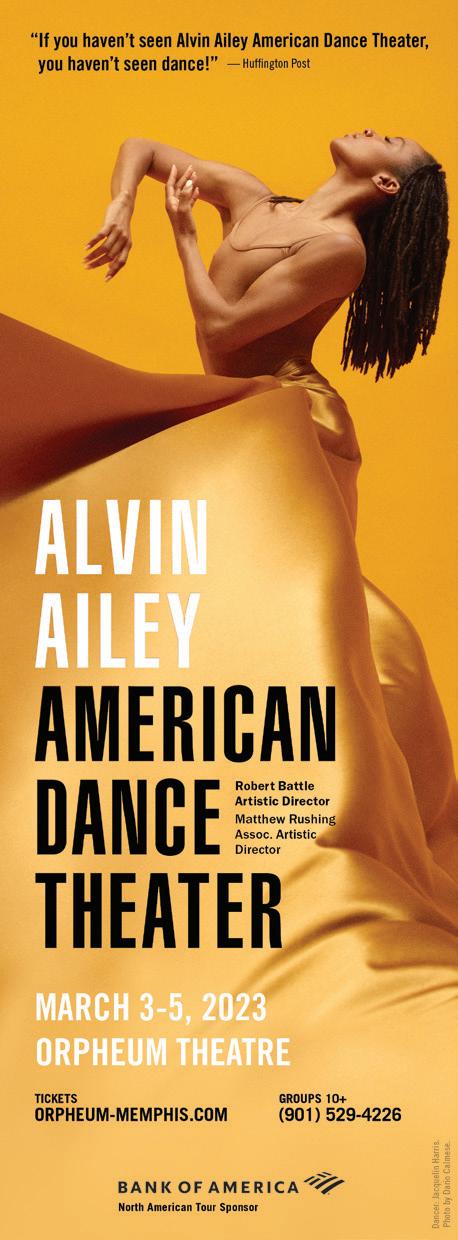 OUR 1763RD ISSUE • 12.08.22 Free BATTLE-TESTED TIGERS P11 CORY BRANAN GOES GHOST P18 VIOLENT NIGHT P28 PHOTO: JUSTIN FOX BURKS | BALLET MEMPHIS A CELEBRATION AND ANTICIPATION FOR ALL THE ARTS HAS TO OFFER THIS SEASON. Winter Arts Guide
