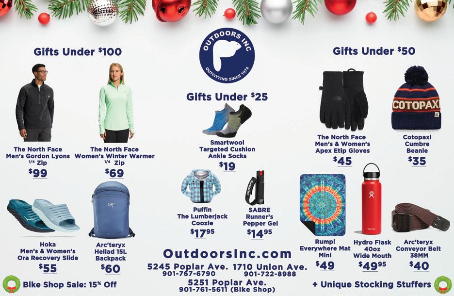 While we’re in the spirit of gratitude, if the opportunity arises, be sure to express thanks to your other delivery drivers, postal workers, restaurant servers, retail associates, and everyone else who keeps the ships a oat, especially this time of year. And consider stopping in a locally owned shop for some of your holiday giing needs this season. ey could use the support much more than Amazon. Shara Clark shara@memphis yer.com