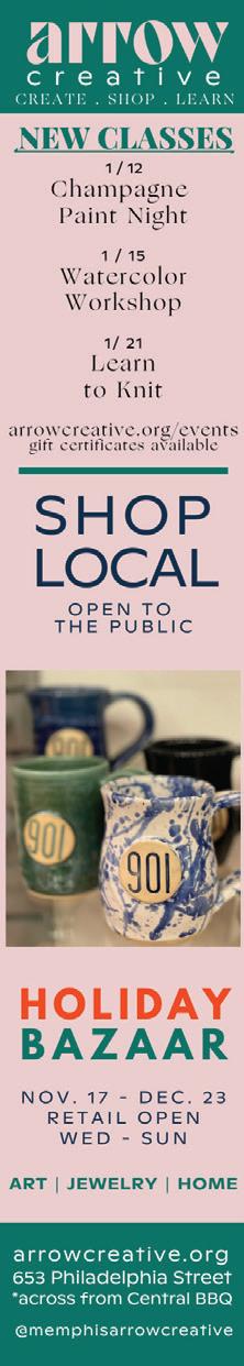ANTIQUES & COLLECTIBLES 21,000 sq ft. 100 + booths • 5855 Summer Ave. (corner of Summer and Sycamore View ) exit 12 off I-40 | 901.213.9343 Mon-Sat 10a-6p | Sun 1p-6p Coco & Lola’s Midtown Lingerie Spice Up Date Night! ALL SIZES SMALL – 3X!! New Styles at CocoandLolas.com IG/FB/TW @CocoandLolas Memphis’ Top Lingerie Shop 710 S. Cox | Mon-Sat 11:30-7:00 GO GLOBAL! xm7digitalsales.com Advertise Online* Mobile Phone * Distribution call us @ (877)-879-9XM7 We're sweetening the deal. Each holiday gift subscription includes 12 issues of MEMPHIS MAGAZINE. Plus a milk chocolate bar from Dinstuhl’s. ORDER TODAY MEMPHISMAGAZINE.COM. Use code HOL22 or call 901.575.9470 JUST $18! more than 70% off the newsstand cover price! I used to be called Mommy, but all my pups have homes and now I’m waiting for mine. I’m a good girl. I love people and attention. I’m good in the car. Won’t you please consider me as your forever companion? To adopt Noni, visit: dogs2ndchance.org/ adoption-application-form/ I’M BEAUTIFUL NONI MAKE YOUR CLOSET HAPPY, MANE. VISIT US AT GRINDCITYDESIGNS.COM/MEMPHISFLYER/ TO PLACE AN ORDER. New/Used LPs, 45s & CDs. 2152 Young Ave - 901-722-0095 goner-records.com Voted Flyer’s Best of Memphis Since 2004 We Open at Noon. We Buy Records!