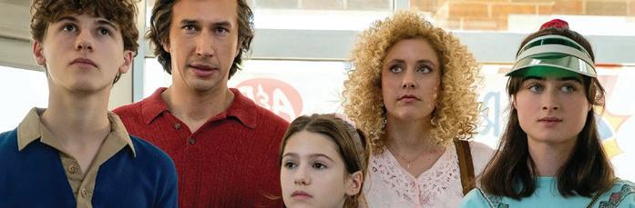 DeLillo’s “hero,” if you want to call him that, is Jack Gladney (Adam Driver), a prominent professor of “Hitler Studies” at a Midwestern liberal arts college. Both he and his wife Babette (Greta Gerwig) are on their fourth marriages, so their four children live in an extremely mixed family. Luckily, the kids seem to get along well, bonded by their shared love of televised disasters. Plane crashes, oods, res — the deadlier the better, says this household of typical viewers.