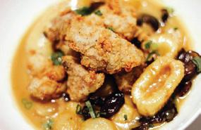 Kelly English, Iris: “Sweetbreads and dumplings just hit the menu at restaurant Iris. Crispy fried sweetbreads with ricotta gnocchi, sherry roasted mushrooms, fresh herbs, and a jus from roasted chickens and onion.