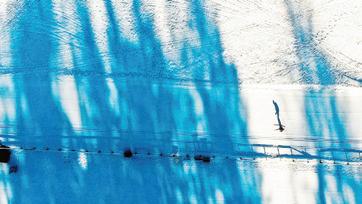 A lone cross country skier tests the Olympic track at Val di Fiemme near Milan, Italy.