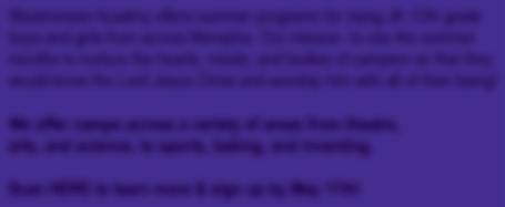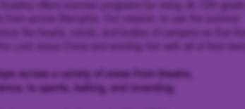 *Some sports camps will be held at our Shelby Farms Campus at 7600 Macon Rd. - Cordova