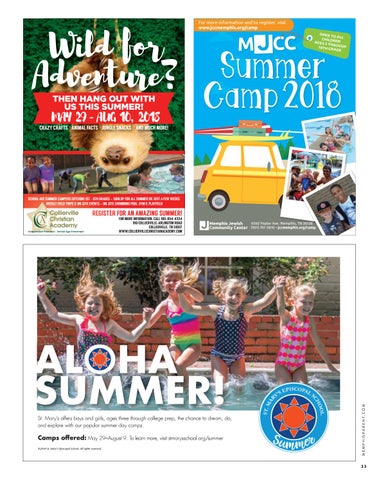 REGISTER FOR AN AMAZING SUMMER! 6560 Poplar Ave. Memphis, TN 38138 Memphis Jewish Community Center (901) 761-0810 • jccmemphis.org/camp