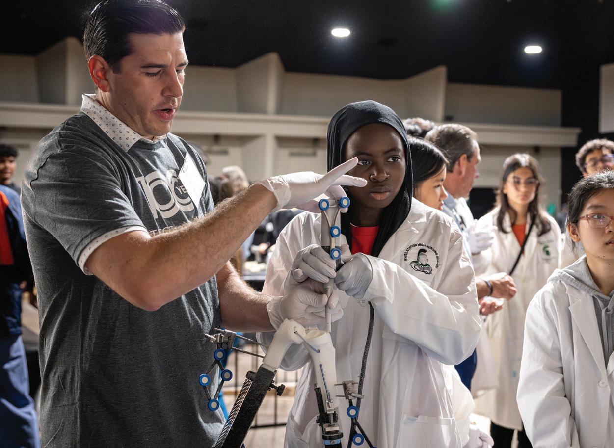 We invest in the future with high school Orthopaedic Exploration Days and college internships. (p. 5 & 7)