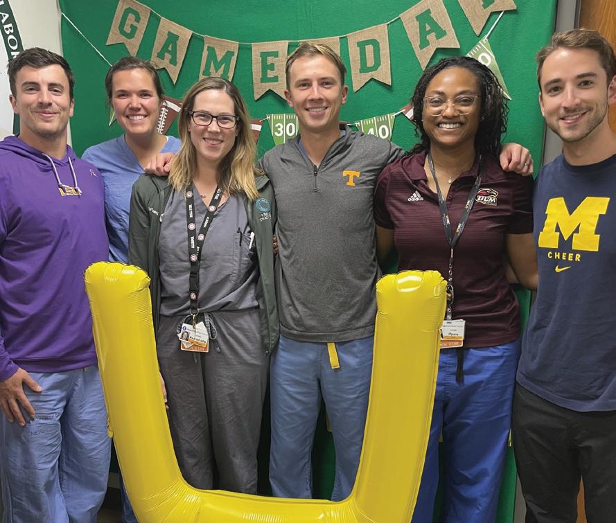On July 1, Dr. Clayton Bettin (Class of 2015) (far right) took the helm as Program Director for the UTHSC-Campbell Clinic Orthopaedic Surgery Residency. He succeeds Dr. Derek Kelly (far left) who served in the role since 2020. Drs. Christopher Cosgrove, Stephanie Chen and Christopher Holland serve as Associate Program Directors, who lead resident training, research and skill development.
