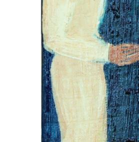 Paintings: (above) “Family Times”; (right) “String Instrument”