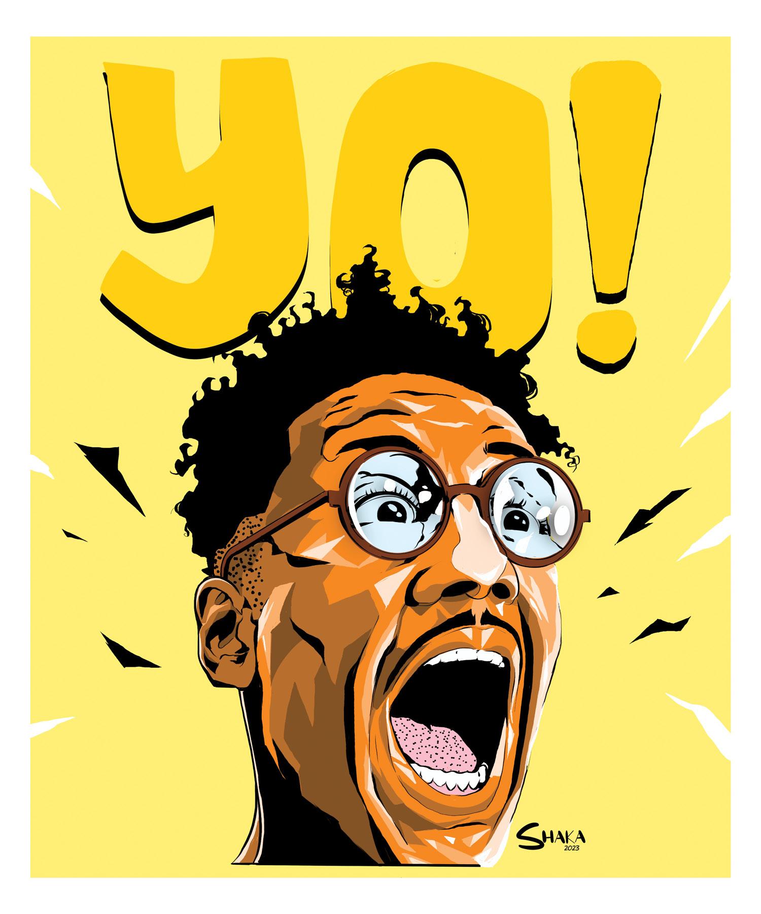 Shaw doesn’t work around a specific drawing schedule, but offers himself the opportunity to step away from projects to look at them with fresh eyes. He finds inspiration everywhere: pop culture, Black culture, childhood memories, and, of course, comic books. It’s all throughout his work—hatching style, bright
