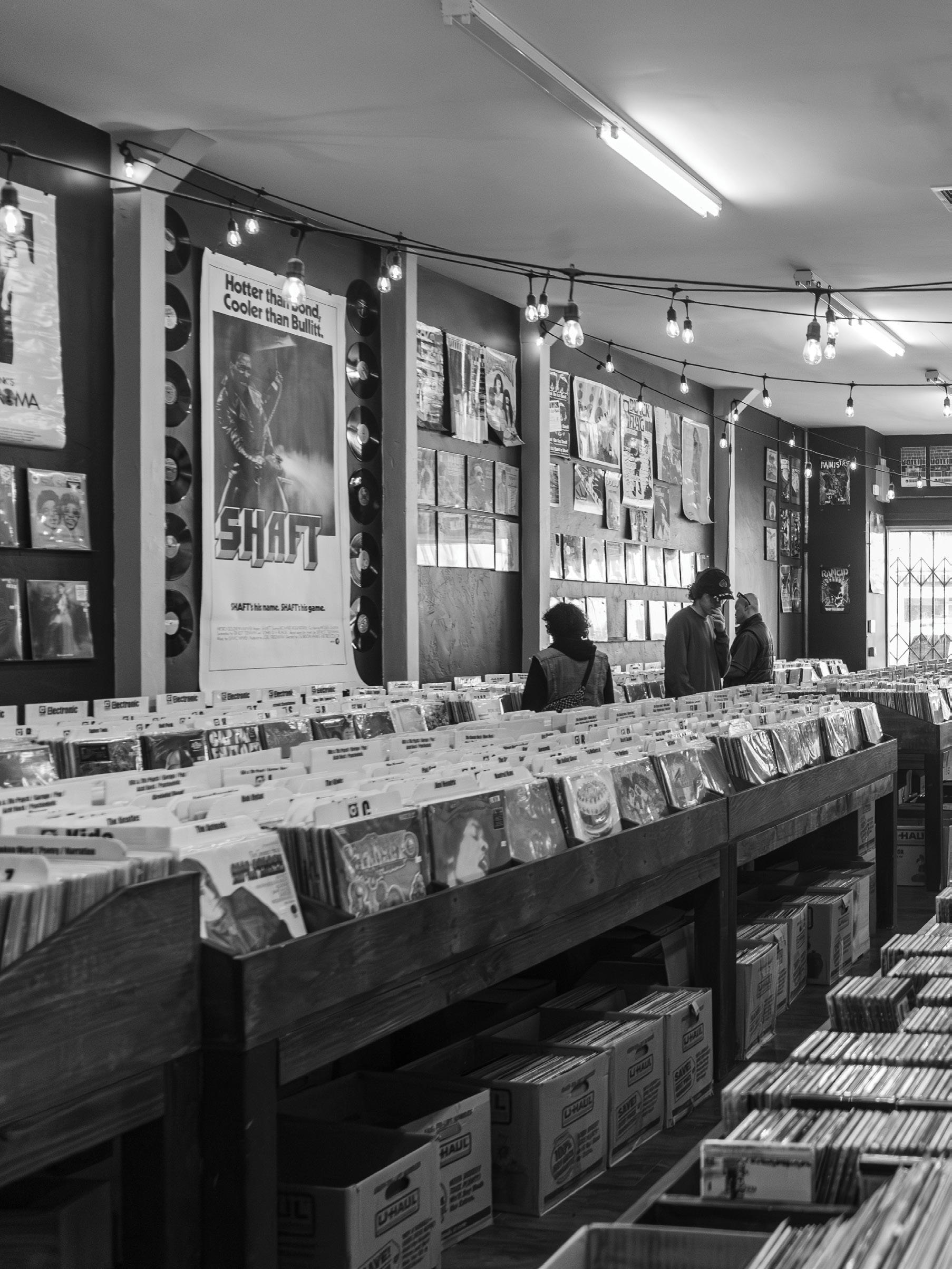 and Boado wanted to branch out. “There was an appeal to do something that had a higher ceiling and could correspond with the shop,” recalls Johnson. In the early 2000s, he ran Birthwrite Records out of his apartment while living in Chicago, and he remembers the struggle of selling releases without a true place of business. After reading about the history of Stax Records, which started when the now legendary label opened a recording studio in the back of a record shop, he saw how their storefront could double as label headquarters, offering visibility for their efforts.