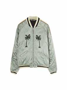 Embroidered-motif Quilted Jacket Palm Angels’ use of contemporary detailing is showcased on this quilted jacket from the AW22 collection. Featuring embroidered palm-tree motifs at the front and back of the design, the garment is as instantly recognisable as the brand.